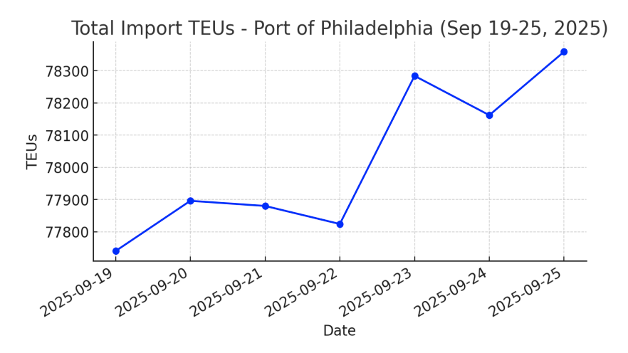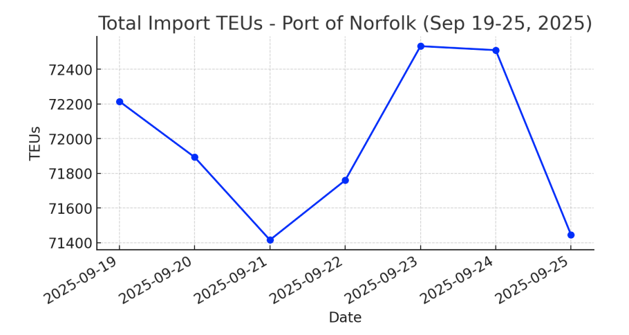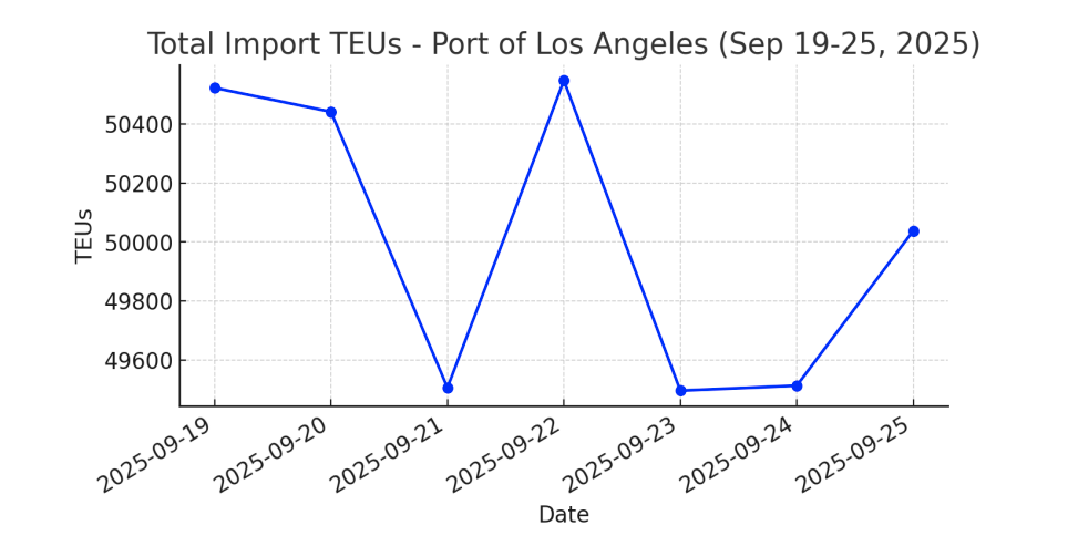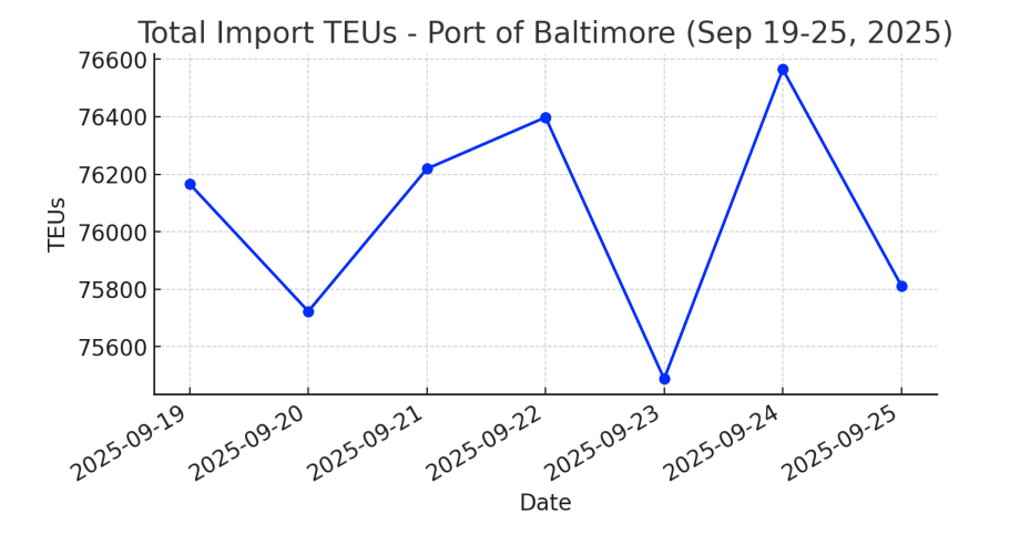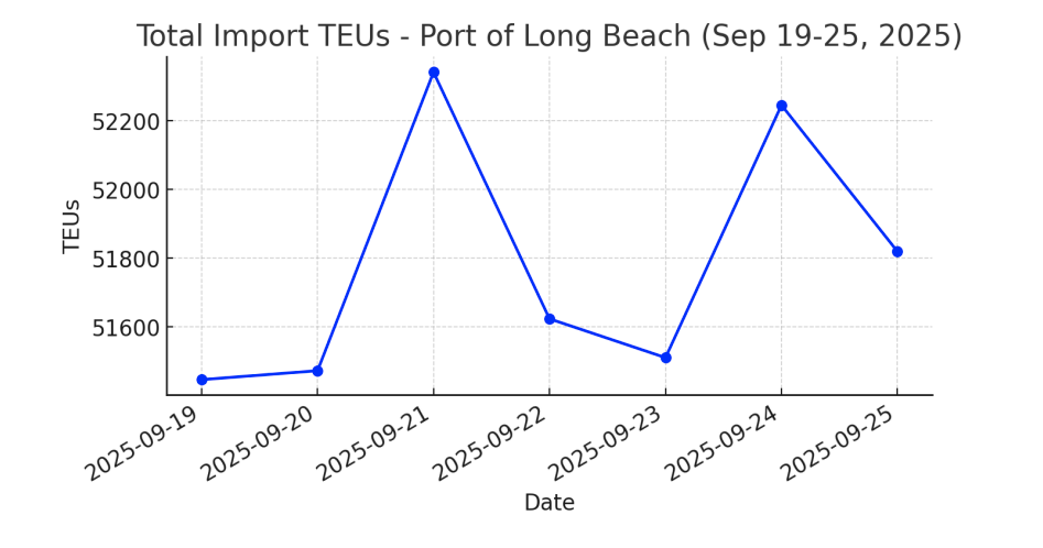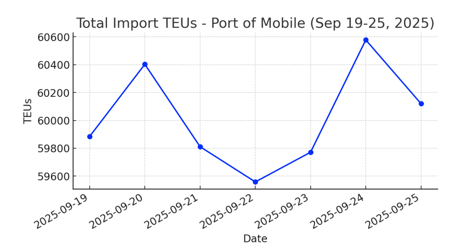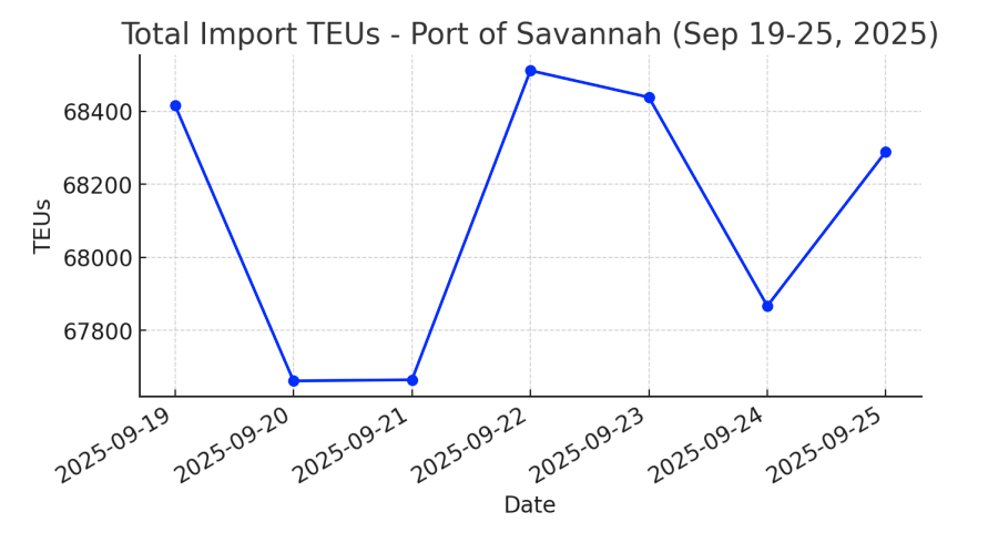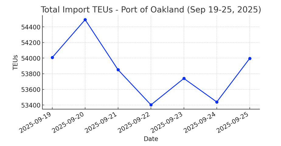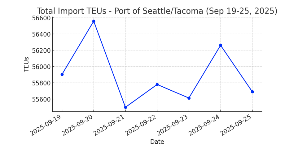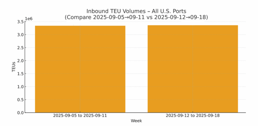 On the ocean side, the transpacific continues to see rate swings. East Coast spot rates rose 2% last week to $3,426/FEU, while West Coast rates slipped 5% to $2,185/FEU and are now trending below $1,900/FEU in daily trading. Additional blank sailings announced for October could help carriers maintain some pricing stability as seasonal volumes ease.
