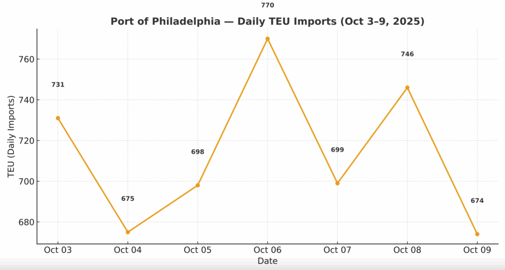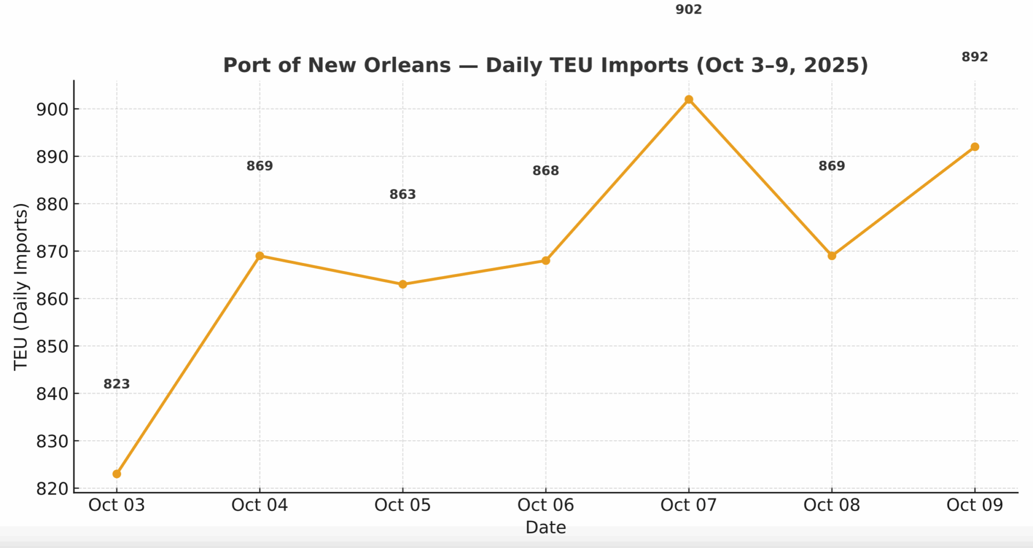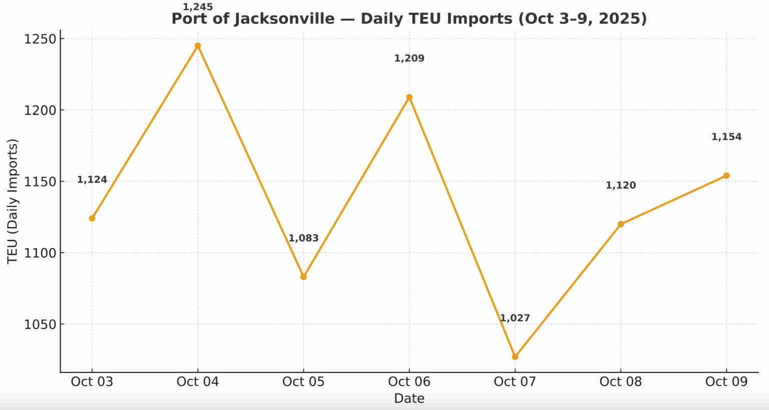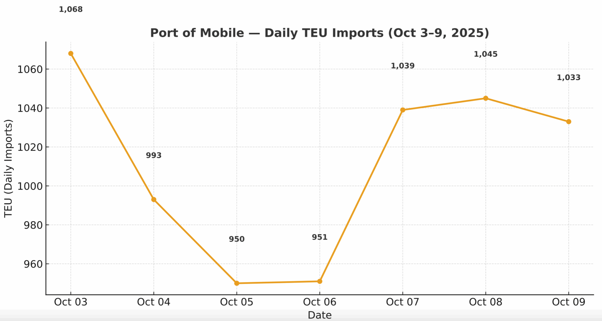 While the headlines center on strikes and shutdowns, container flows keep moving — just not always where you’d expect. U.S. import TEUs climbed another 6.9% week-over-week, continuing a late-season surge driven by restocking and pre-holiday bookings ahead of tariff uncertainty. The biggest jumps came through NY/NJ (+10.2%), Savannah (+8.4%), and Charleston (+7.1%), as shippers diverted cargo from Montreal and West Coast gateways toward East Coast reliability. Los Angeles and Long Beach volumes were modestly higher (+3.8% and +4.1%, respectively), reflecting steady Transpacific flows — but analysts expect a potential softening if the shutdown continues to slow customs and FDA clearances. Some inland rail hubs are also reporting longer dwell times and inconsistent chassis availability, a byproduct of both East Coast rerouting and delayed returns. Carriers continue adjusting network capacity to match these shifts, with some short-term reallocation of sailings from Canadian and Northern routes toward the U.S. South Atlantic. The result is a rare late-Q4 imbalance: higher TEU throughput on the East Coast even as West Coast rates flatten.