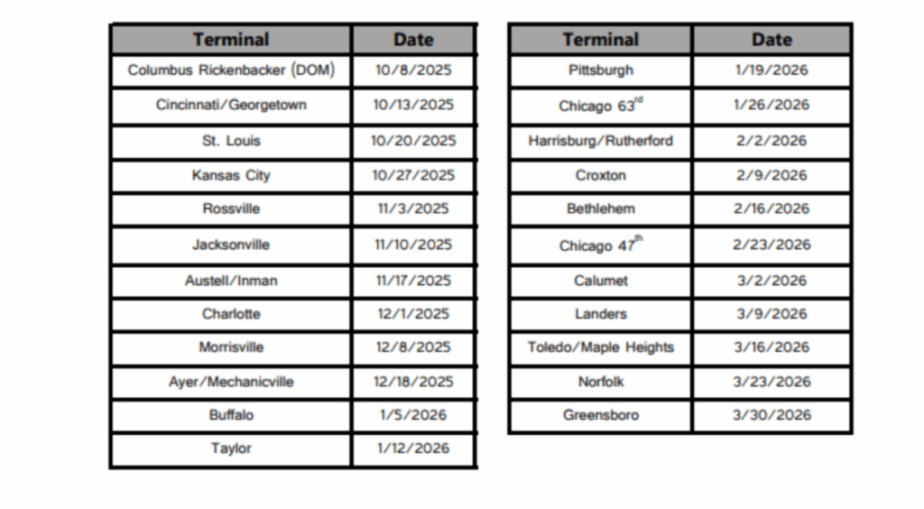 Norfolk Southern is deploying its new Thoroughbred Resource Planning System (TRPS) network-wide after a year of testing. The goal: reduce variability by standardizing train sizes and scheduling. Shippers will now need reservations for all ingates, with a target of 85% daily utilization. Expect tighter appointment discipline and limited flexibility during rollout — especially for small-volume or just-in-time shippers.