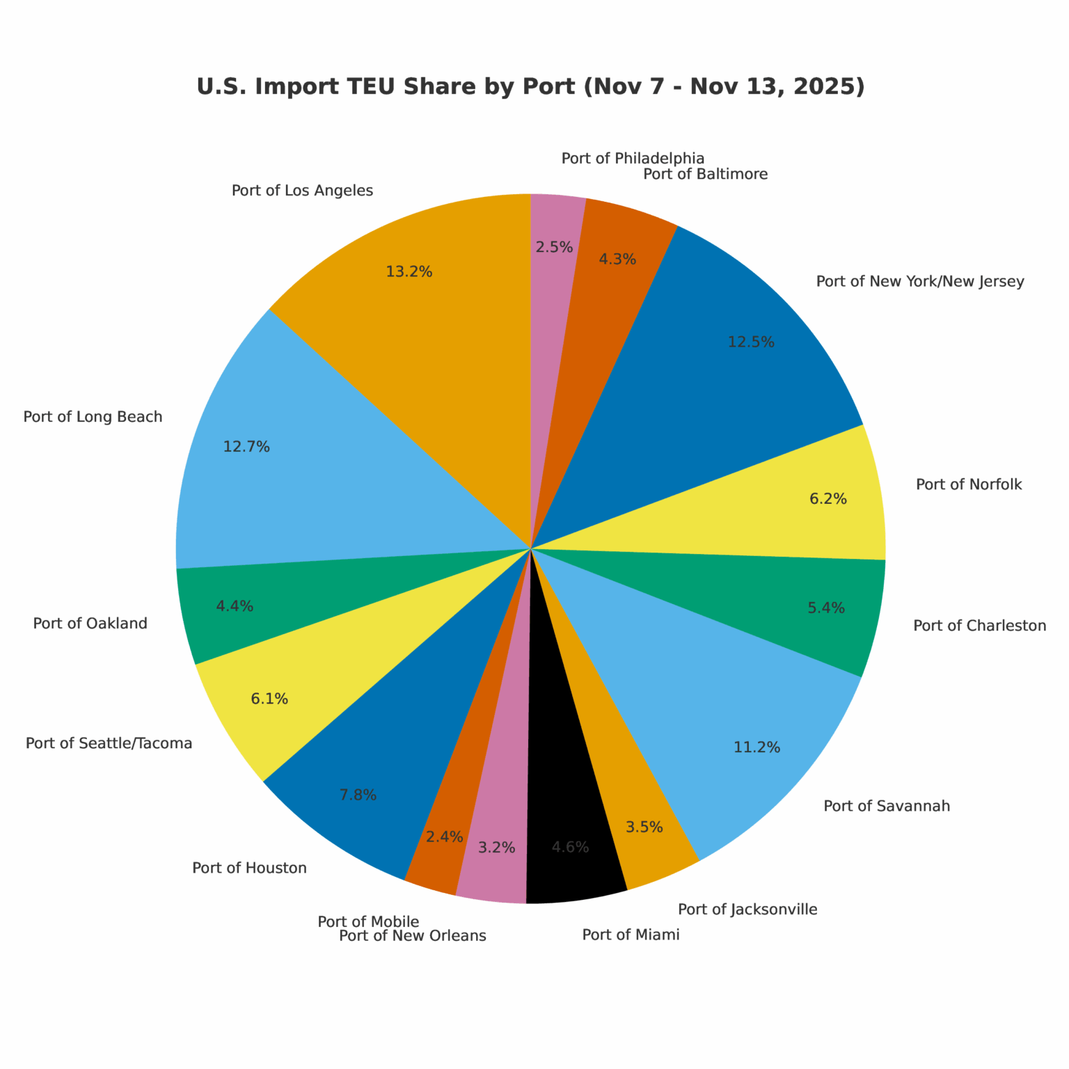 As the trade landscape recalibrates, the coming year could offer shippers the kind of environment they’ve been waiting for — one built on planning instead of panic. The early import surge of 2025 minimized disruption and kept U.S. inventories strong heading into peak season. Now, with volumes easing, transportation networks have room to catch up and reset service levels. In short, the data may show a decline in TEUs, but beneath the surface lies a positive story: supply chains that are functioning more smoothly, cost pressures that are easing, and a freight market that’s finally returning to equilibrium. For retailers, forwarders, and importers alike – stability is back on the menu. But 2026 could always bring surprises!