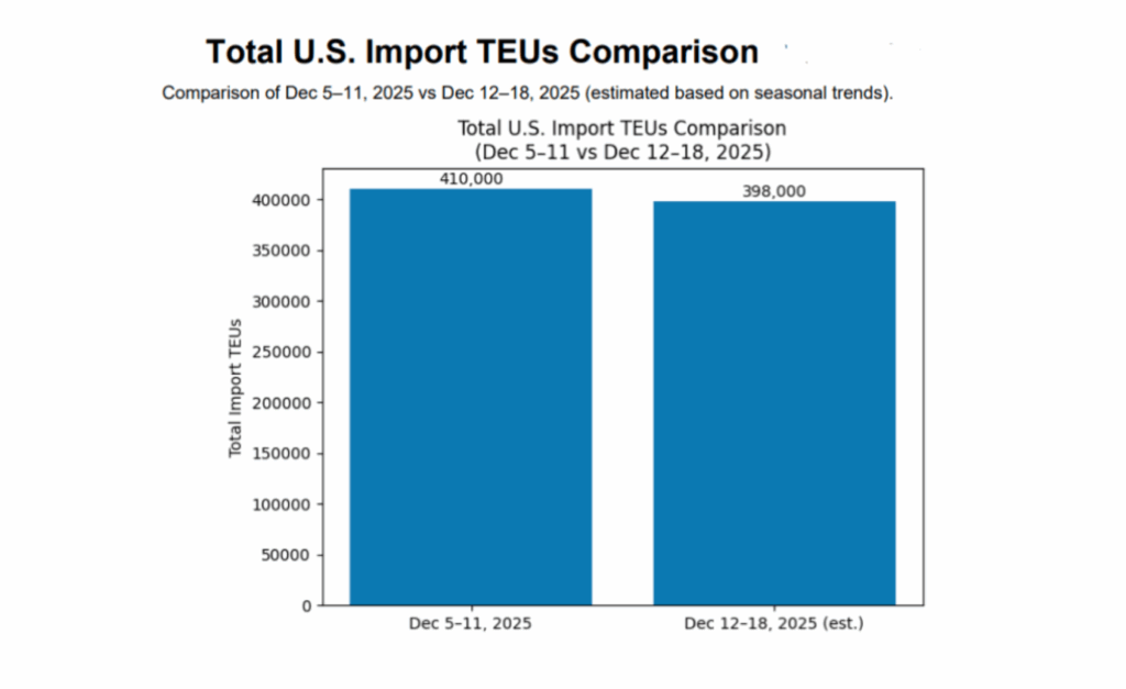 U.S. container import volumes entering the first quarter of 2026 are expected to reflect the aftereffects of aggressive front-loading earlier in 2025. Many importers moved inventory forward to hedge against policy changes and supply-chain disruptions, leaving warehouses fuller than usual as the year winds down. That dynamic is likely to suppress ordering activity in January and February, resulting in softer-than-average volumes and uneven weekly flows rather than a clean, seasonal rebound. This is not a collapse in demand, but a digestion phase as inventories normalize.